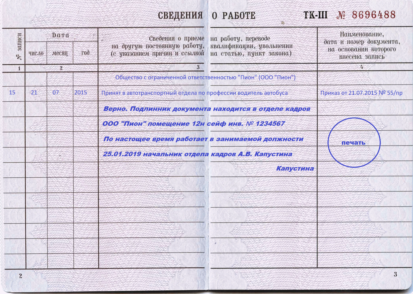 Образец заверения трудовой книжки согласно актуальным нормативным актам РФ