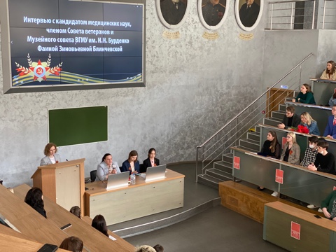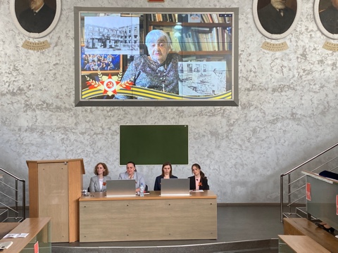 В конференции, организованной заместителями декана педиатрического факультета Е.В. Богачевой, С.А. Стикиной, Т.В. Жибровой, профессором кафедры пропедевтики детских болезней и поликлинической педиатрии А.В. Почиваловым и профессором А.А. Звягиным, приняли участие более ста студентов педиатрического факультета. С приветственным словом к участникам конференции обратилась декан Л.В. Мошурова о важности и значимости праздника дня Победы для нашей страны, а студентка 3 курса педиатрического факультета А. Косыгина прочла стихотворение Т. Белозерова «Вечный огонь». Проникновенные строки передали всю боль и надлом человеческой души, погружая в атмосферу людских трагедий войны. После была объявлена минута молчания в память о погибших в ВОВ. Видеоинтервью с Блинчевской Фаиной Зиновьевной о разрушенном в годы войны Воронеже, послевоенных трудностях, записанное специально для участников этой конференции студентками 4 курса Ю. Главатских и Д. Гуркиной, погрузило молодое поколение в военное лихолетье. Дитя войны, врач с 50-летним стажем, кандидат медицинских наук, член Совета ветеранов ВГМУ им. Н.Н. Бурденко, наставник молодежной волонтерской организации ВГМУ «Млечный Путь», краевед, писатель Блинчевская Ф.З. в своих воспоминаниях погрузила слушателей в атмосферу послевоенного Воронежа, рассказала о восстановлении медицинского института и в конце напутствовала студентов словами: «самое дорогое в жизни – это здоровье и верные друзья». Докладчики – студенты 2 и 3 курсов И. Белова, Е. Рыжкова, Д. Шубина, Л. Филонова, А. Яблонских, И. Карташов, С. Лобова очень проникновенно, с большим уважением и гордостью рассказали о врачах - героях Великой Отечественной войны, воронежцах. Интересные презентации с архивными и семейными фотографиями представлены о педиатре Георгиевской Н.И. из династии врачей, профессоре Платоновой В.А., которая испытала все ужасы блокадного Ленинграда. Вспоминали заслуги и подвиги Абакумова М.П., врачебную династию Русанова А.Г., доцента кафедры детской хирургии Птицына А.И., героя ВОВ, радиобиолога и космобиолога Антипова В.В., именем которого назван музей космической биологии и медицины в нашем вузе.