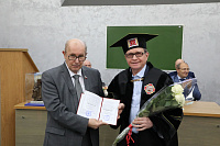 В рамках праздничного дня состоялась церемония присвоения званий и вручения различных наград, а также презентация биобиблиографических пособий ученых ВГМУ им. Н.Н. Бурденко Владимира Ивановича Бахметьева и Андрея Михайловича Земскова. Мантию и диплом Почетного профессора Воронежского государственного медицинского университета им. Н.Н. Бурденко в этот день вручили заведующему кафедрой ургентной и факультетской хирургии доктору медицинских наук Евгению Фёдоровичу Чередникову и профессору кафедры инфекционных болезней, доктору медицинских наук Юлии Георгиевне Притулиной.