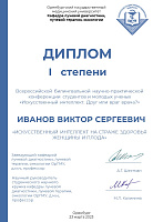 Наш вуз достойно представили студент 2 курса лечебного факультета Иванов Виктор Сергеевич (заместитель председателя СНО Акушеров-гинекологов ВГМУ им. Н.Н. Бурденко) и студент 6 курса педиатрического факультета Обернихин Кирилл Игоревич (председатель СНО Акушеров-гинекологов ВГМУ им. Н.Н. Бурденко). В рамках конференции был представлен доклад «Искусственный интеллект на страже здоровья женщины и плода» (научный руководитель – заведующая кафедрой акушерства и гинекологии №2, профессор, д.м.н. Енькова Е.В.), в котором были освещены разработки кафедры (мобильные приложения, программные комплексы), выполненные в рамках реализации кафедрой национального проекта «Здравоохранение» по разработке и внедрению инновационных технологий и сервисов в практическую деятельность лечебно-профилактических учреждений.