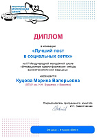 Отзыв Куцовой Марины о мероприятии: «Я очень рада, что прошла отбор в Школу. Прекрасно, что сейчас проводится все больше таких важных и нужных мероприятий. Знания, полученные за время обучения, безусловно, пригодятся в работе. Я узнала о новых и самых актуальных методах лечения онкологических заболеваний, увидела результаты современных исследований, получила теоретическую базу в области ядерной физики, а также познакомилась с невероятными профессионалами своего дела: онкологами, радиологами, физиками, которые всегда готовы делиться опытом и знаниями. Мне хочется выразить огромную благодарность заведующему кафедрой онкологии ВГМУ им. Н.Н. Бурденко, профессору, д.м.н. Мошурову Ивану Петровичу и доценту кафедры Мануковской Ольге Валерьевне за то, что они поддержали мою инициативу принять участие в IV Международной молодежной школе».