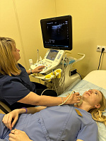 Совместно с сотрудниками БУЗ ВО «ВОКОД» участники провели диагностику патологии щитовидной железы студентам и ординаторам кафедры. Молодые онкологи получили рекомендации по профилактике и диагностике рака щитовидной железы от ведущего врача ультразвуковой диагностики, доцента кафедры онкологии Андреевой Ольги Валериевны.