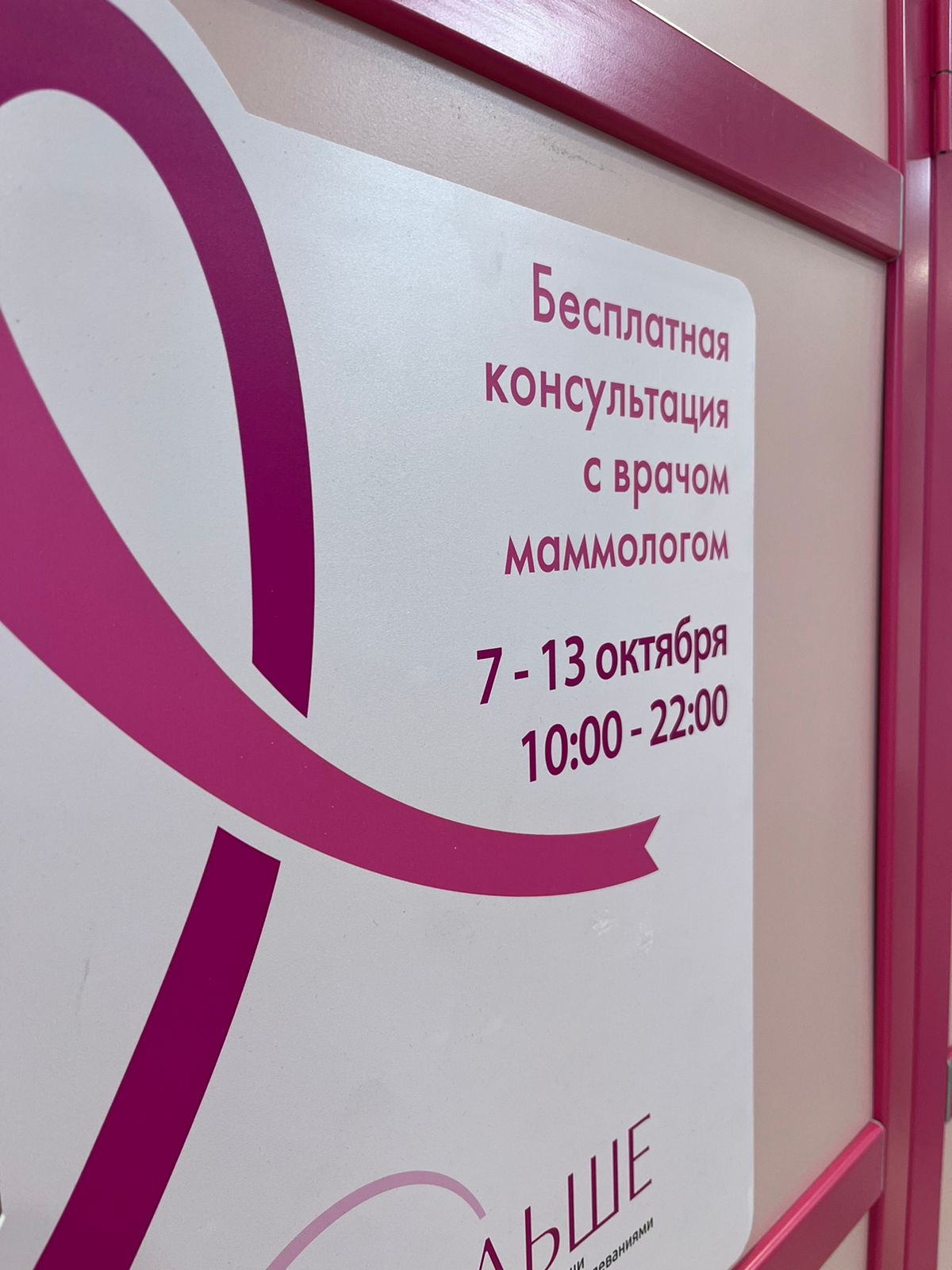 С 7 по 13 октября прошла «Неделя здоровья груди». В семи крупных торговых центрах Москвы, Казани, Нижнего Новгорода, Воронежа и Сочи работали мобильные кабинеты профилактики. Опытные специалисты бесплатно консультировали всех желающих по вопросам, связанным со здоровьем груди. Каждая женщина, заботящаяся о своём здоровье, могла посетить эти кабинеты и задать все интересующие её вопросы.