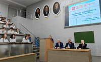 Михаил Васильевич начал встречу с теплых воспоминаний о своем первом курсе и первой сессии, рассказал о становлении в профессии. Особый интерес вызвал вопрос взаимодействия ВГМУ и Ассоциации в рамках проведения аккредитации выпускников. В конце встречи Михаил Васильевич с гордостью сказал о «медицинском братстве», которое помогает не только в мирное время, но и в зоне проведения СВО.