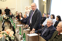 После посещения выставки состоялось торжественное возложение цветов к памятной стеле у главного корпуса университета.