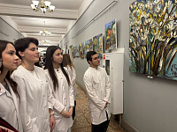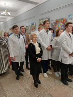 Проректор по воспитательной работе А.Н. Морозов отметил авангардный стиль художницы и обратил внимание студентов на важность всех компетенций российского врача, в том числе культурную и творческую составляющую его работы.