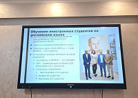 С докладом об особенностях социокультурной адаптации студентов 1 курса ООП General Medicine выступила заместитель директора по образовательным программам Гирко В.А. Виктория Андреевна рассказала об особенностях преподавания на языке-посреднике, а также доложила о трудностях и личных особенностях студентов, обучающихся по ООП General Medicine.