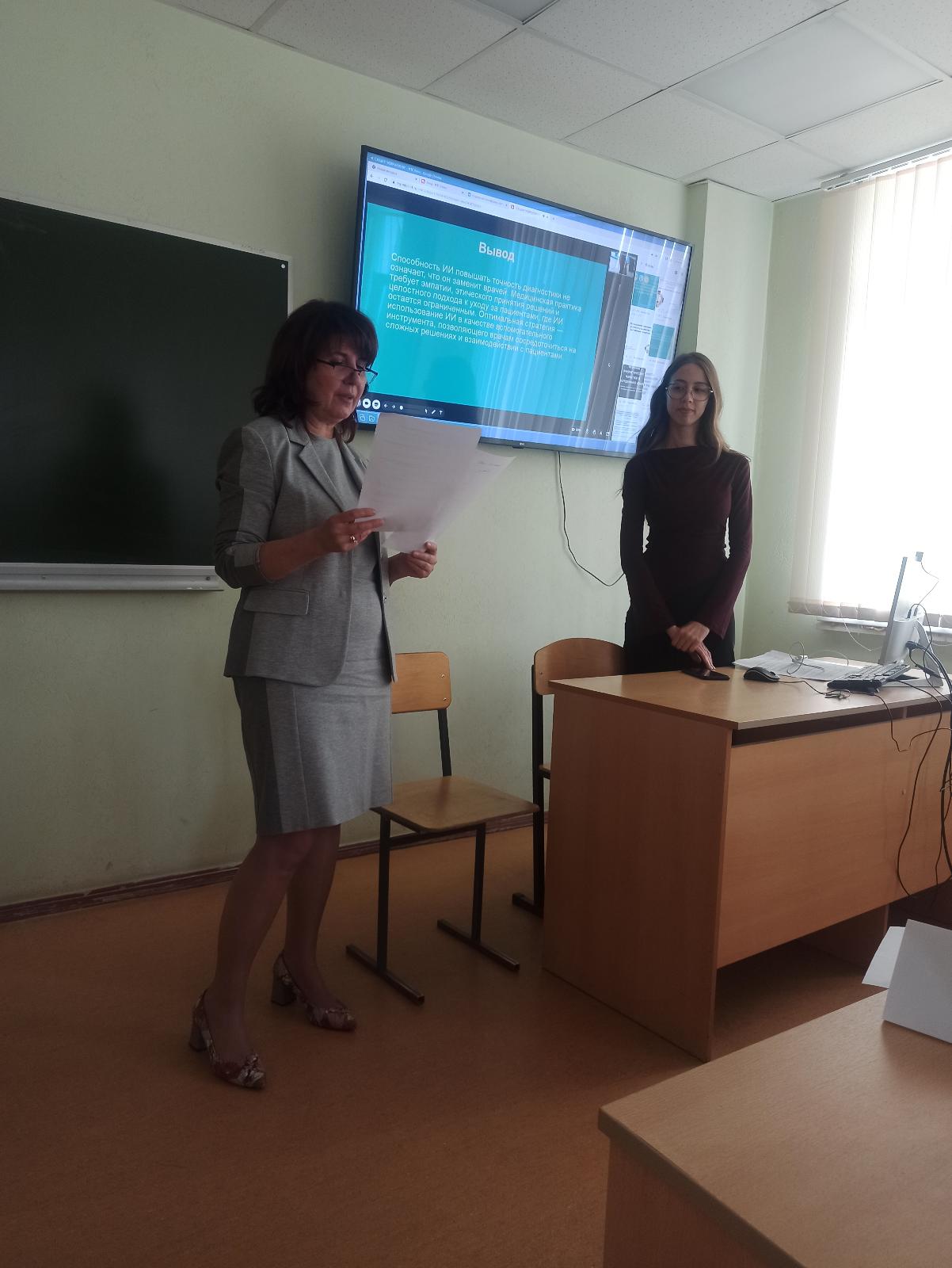 Первое место заняла работа «Некоторые особенности вариабельности сердечного ритма у пациентов в остром периоде ОНМК», выполненная студентами Д.М. Кунгуровой (Л-507) и П.А. Свиридкиным (Л-401).