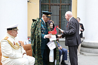 К наследникам героев – студентам-медикам – обратился и почетный гость мероприятия, ветеран Великой Отечественной войны Николай Борисов. Он рассказал, как в боях был дважды ранен и едва не потерял ногу, и о том, как прошёл шесть госпиталей, и том, что сохранить и здоровье, и жизнь помогли фронтовые медики. Рассказал и о том, что медицинские работники в годы Великой Отечественной войны проявили особый героизм, стойкость и мужество, находясь на пределе человеческих возможностей, выполняли свой благородный долг — спасали жизни людей. Девушки-санитарки и медсестры на хрупких плечах выносили раненых бойцов. Медицинский персонал госпиталей работал сутками. Военные врачи проводили сложнейшие операции зачастую под шквальным огнем, не имея достаточного количества медикаментов и нормальных условий.