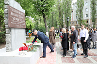 Участники митинга минутой молчания почтили память всех погибших воинов, которые сражались за Родину и возложили цветы у стелы, расположенной на территории медуниверситета.