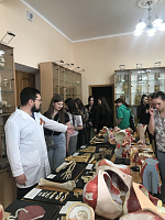 Завершающим этапом экскурсии стало посещение анатомического музея, с которым ребят познакомил ассистент кафедры нормальной анатомии человека, к.б.н. Фетисов С.О. Сергей Олегович подробно рассказал о строении человеческого тела, используя экспонаты музея для демонстрации анатомических структур и их функций. Он также осветил современные достижения в области анатомии и перспективы их применения в медицинской практике.