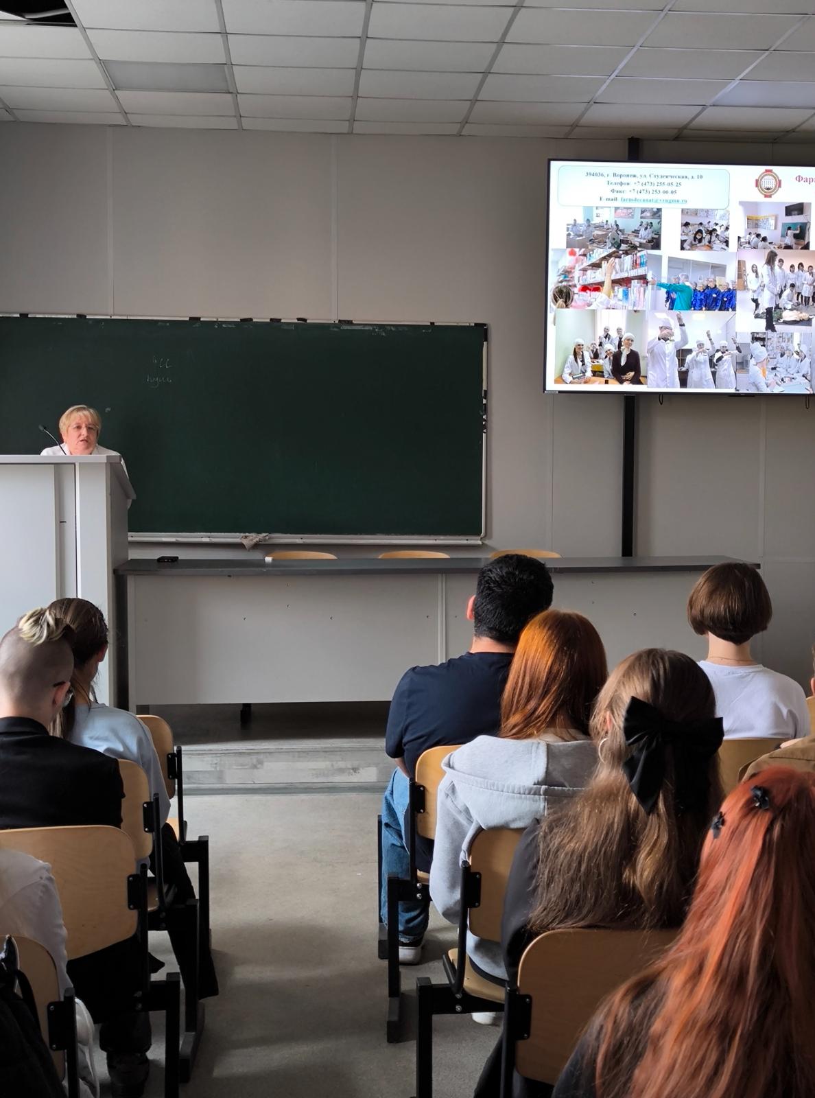 Далее прозвучали доклады преподавателей фармацевтического факультета: доцента кафедры клинической лабораторной диагностики Зотовой Е.Е., заведующей кафедрой фармацевтической химии и фармацевтической технологии Л.В. Рудаковой и профессора кафедры организации фармацевтического дела, клинической фармации и фармакогнозии Т.Г. Афанасьевой. В своих докладах преподаватели затронули вопросы, касающиеся организации учебного процесса на кафедрах по программам высшего образования, о разносторонних знаниях, о навыках и компетенциях, которые они приобретут в ходе обучения, а также о широком спектре возможностей профессиональной деятельности, которые предоставляет высшее образование по специальности Фармация.