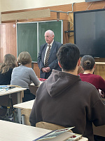 В ходе встречи с учениками 10–11-х классов Владимир Иванович рассказал о ветеранах – преподавателях и студентах, которые внесли значительный вклад в развитие университета и медицины и о примерах мужества и героизма ветеранов-медиков в военное и мирное время.