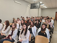 22 октября 2025 года в рамках реализации курса «Основы Российской государственности», а также согласно плана учебно-воспитательной и наставнической работы кафедры педагогики и гуманитарных дисциплин состоялась встреча студентов 1 курса фармацевтического (Ф101-103) и педиатрического факультетов (П-101, 102, 106) с ассистентом кафедры патологической анатомии И.А. Сертаковым.
