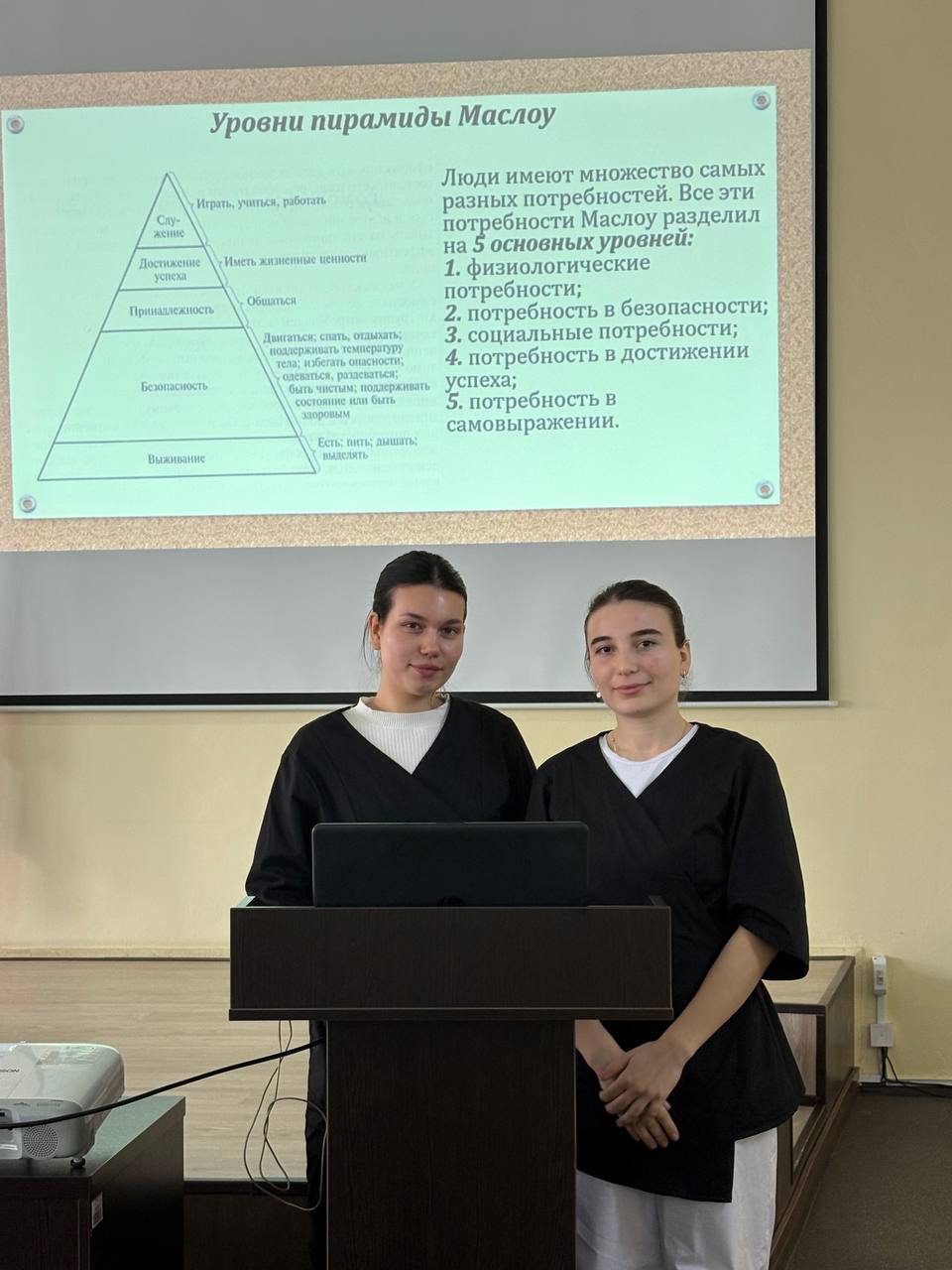 2. «Пирамида жизненно важных потребностей человека». Докладчики: Магомедова Р.М., Назаренко К.Р., студентки 1 курса ССД 104 группы.