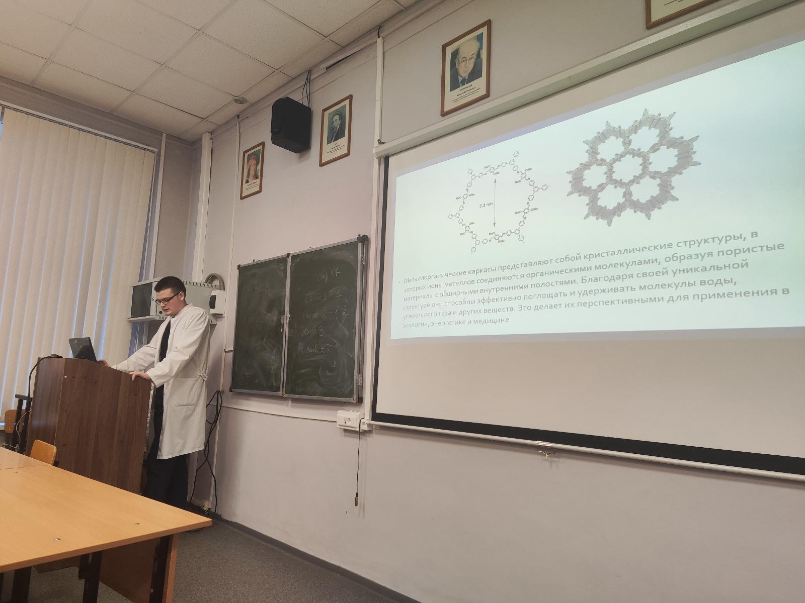 Про Нобелевскую премию 2025 года по химии всем присутствующим рассказал Иноземцев Илья (Ф-202). Лауреатами премии по химии в этом году стали трое ученых: Сусуму Китагава (Япония), Ричард Робсон (Австралия) и Омар М. Яги (США). Они создали молекулярные конструкции с большими пространствами, которые могут использоваться для сбора воды из воздуха в пустынях, улавливания углекислого газа, хранения токсичных газов или катализа химических реакций.