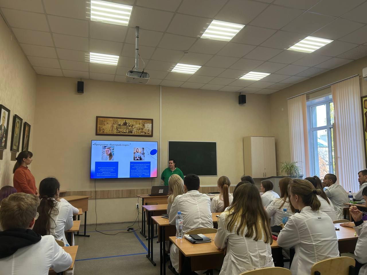 Представители сети аптек «Ригла» рассказали о стратегии развития сети, направленной на расширение спектра предоставляемых услуг, включая консультирование по вопросам здорового образа жизни и профилактики заболеваний. Студенты были ознакомлены с требованиями, предъявляемыми к современному фармацевту, работающему с пациентами.