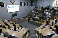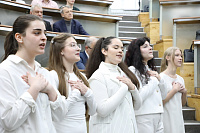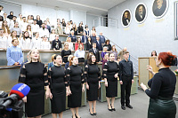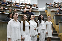 По давно сложившейся традиции в праздничный день в центральной медицинской аудитории состоялось торжественное заседание учёного совета ВГМУ, которое началось с исполнения вокальным ансамблем «Кантус» гимна Gaudeamus.