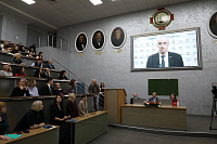 Далее с приветственным словом к собравшимся обратился исполняющий обязанности ректора, профессор Владимир Иванович Болотских. Он поздравил всех собравшихся в аудитории со 107-летием Воронежского медуниверситета, кратко подвёл итоги работы вуза и обозначил перспективы развития, подчеркнув при этом, что труд и усилия каждого лежат в основе достижений и успехов альма-матер, которые базируются на прочной основе, построенной выдающимися предшественниками.