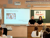 В своем обращении Иван Петрович с профессиональной точностью онколога доступно объяснил и привел примеры, как компоненты табачного дыма запускают механизмы канцерогенеза, провел наглядный анализ рисков, которые несет курение не только сигарет, но вейпов и курительных смесей. Была обсуждена связь между рисками развития онкологических заболеваний и стажем курения. Особый акцент был сделан на уязвимости молодого, формирующегося организма школьников.