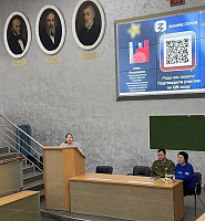 Она была организована в рамках гражданско-патриотического проекта «Встреча с патриотами России», реализуемого на кафедре педагогики и гуманитарных дисциплин. В ней приняли участие обучающиеся института стоматологии и члены историко-культурологического кружка «Синопсис», к.п.н., доцент И.Е. Плотникова, к.и.н., доцент В.В. Бахтин, к.псих.н., доцент А.А. Филозоп.