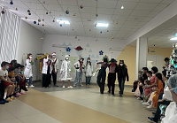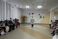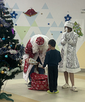 Новый год - долгожданный и любимый праздник детей всех возрастов. К сожалению, в новогодние праздники не у всех детей есть возможность побывать на Новогодних ёлках. Преподаватели кафедры тепло поздравили ребят с наступающими праздниками и пожелали им скорейшего выздоровления. Студенты нашего вуза предоставили возможность каждому ребёнку поверить в чудеса, подготовив праздничную программу с конкурсами и играми, настоящее сказочное приключение. Ребята танцевали, пели новогодние песни и водили хоровод вокруг ёлки. А кульминационный момент, когда каждый ребёнок получил свой подарок из рук Дедушки Мороза, стоит бесконечно многого: детские глаза, горящие восторгом, улыбка и осторожное разглядывание сюрприза не могло оставить никого равнодушным!
