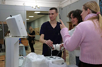 Одной из самых интересных частей мероприятия для школьников стала встреча с действующими студентами различных курсов. Команда студенческого совета лечебного факультета организовала симуляционный тренинг для того, чтобы ребята смогли погрузиться в медицинский мир и попробовать себя в роли врачей. Они работали с настоящими хирургическими инструментами на эндоскопической стойке, принимали роды, проводили сердечно-лёгочную реанимацию и интубацию, а также тренировались делать внутримышечные и внутривенные инъекции. Родители тоже не остались равнодушными и активно принимали участие. Параллельно будущие абитуриенты общались со студентами по интересующим вопросам обучения, практики и студенческой жизни.