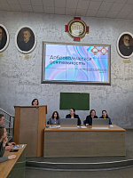 Турищева Валерия, стипендиат Правительства РФ, студентка 4 курса, Буравлева Анастасия, староста группы 5 курса, и Егорова Нина, староста СНК кафедры неонатологии и педиатрии, студентка 6 курса, поделились с аудиторией информацией о мерах социальной поддержки студентов ВГМУ, включая различные виды стипендий и грантов, о студенческой науке на педиатрическом факультете, формате работы студенческих научных кружков кафедр и академической мобильности студентов - возможностях участия в олимпиадах, конференциях и научных школах в других странах – Китае, Венгрии, Беларуси, Узбекистане – очно и дистанционно.