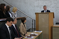 Конференция прошла в центральной медицинской аудитории под председательством и.о. ректора ВГМУ им. Н.Н. Бурденко Ивана Петровича Мошурова.