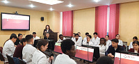 Затем врио начальника отдела разрешительно-визовой работы управления по вопросам миграции ГУ МВД России по Воронежской области Ольга Голомёдова рассказала иностранным студентам об особенностях миграционного учёта и сопровождения иностранных граждан на территории Российской Федерации. Ольга Александровна акцентировала внимание иностранных студентов на регистрации, визовых правилах и профилактике экстремизма среди молодёжи через расширение кругозора и качественное образование. Зорина Анна Вячеславовна, директор филиала Воронежского регионального отделения Российского общества «Знание», подчеркнула важность проводимой встречи, воспитание духовно-нравственных ценностей молодежи на пути получения профессионального образования.