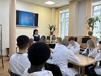 На встрече присутствовали студенты лечебного факультета и студенты МИМОС. Специально для наших студентов был подготовлен информационный материал о воинских мемориалах Воронежа. У каждого известного воронежского памятника своя история создания, идеи и замыслы, свой автор - скульптор.