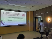 Хирургические осложнения брюшного тифа в своем докладе продемонстрировала студентка 5 курса лечебного факультета А.О. Козадерова, которая акцентировала внимание на принципах дифференциальной диагностики хирургических осложнений брюшного тифа, маршрутизации пациентов, хирургической тактике, необходимости мультидисциплинарного подхода в лечении данной группы больных.