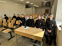Экскурсионная программа продолжилась в музее космической биологии и медицины им. В.В. Антипова. Экскурсию провела заведующая музейно-историческим комплексом, кандидат исторических наук, доцент С.В. Маркова. Воспитанники семинарии узнали об истории освоения космоса, выдающихся достижениях отечественной науки и техники, а также о философских и мировоззренческих вопросах, связанных с местом человека во Вселенной.