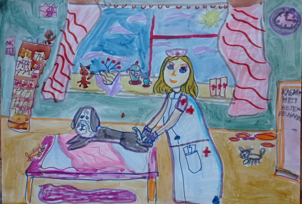- Кроткова Ксения, 9 лет, изостудия МБОУ СОШ № 94, – «Здесь лечат животных»