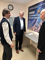 Научная дискуссия продолжилась в НИИ ЭБМ, где гостям была показана материально-техническая база лабораторий, представлены результаты проводимых совместных исследований. В частности, широко обсуждались оригинальные методики, используемые в лаборатории молекулярной морфологии и иммунной гистохимии, раскрывающие особенности межклеточного сигналлинга в формировании специфического тканевого микроокружения.