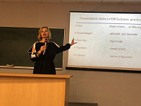 Методической частью семинара стало выступление заведующей кафедрой иностранных языков Анны Олеговны Стеблецовой на тему «English as Medium of Instruction: practical tips to VSMU academic staff». В интерактивной форме участники обсудили практические особенности ведения лекций и семинарских занятий для англоязычной аудитории. Были рассмотрены основные речевые и коммуникативные приемы, которые используются при обучении на английском как языке-посреднике.