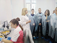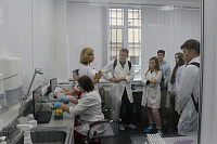 В отделе лабораторной диагностики ребята проследили весь путь выполнения анализов от забора крови до получения результата исследования. Они узнали о различных видах лабораторных исследований, необходимых для точной постановки диагноза, увидели работу аппаратов, на которых проводятся исследования.