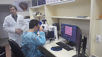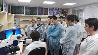 Целью визита стало знакомство молодежи с современными возможностями морфологического анализа в биомедицине. Экскурсия по лабораториям позволила юным дарованиям в общих штрихах представить себе суть поисковой деятельности для изучения функции клеток и тканей.
