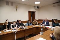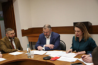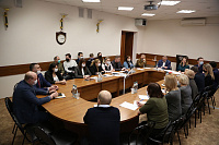 На встрече присутствовали: проректор по научно-инновационной деятельности А.В. Будневский, заместитель главного врача по инновациям и развитию стоматологической поликлиники медуниверситета В.В. Ростовцев, директор СОК О.Н. Крюкова, начальник учебного управления Н.В. Страхова, доцент кафедры ОЗД ИДПО, главный врач медицинского центра «Клиника Пульс» А.Ю. Гончаров, заведующая кафедрой детских инфекционных болезней С.П. Кокорева, заведующая кафедрой фтизиатрии О.В. Великая, доцент кафедры поликлинической терапии Ю.А. Котова, доцент кафедры общей гигиены Е.П. Мелихова, декан факультета довузовского образования И.И. Либина и другие.