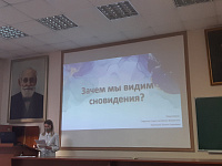 С докладами «Современные взгляды на механизмы формирования сна» и «Зачем мы видим сны?» выступили студенты второго курса лечебного факультета - Медведев А.И. и Карпикова Т.С.