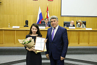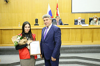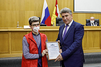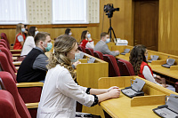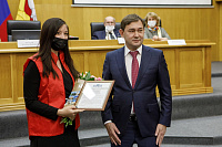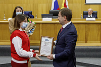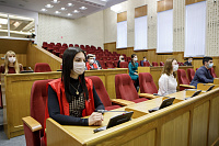В Большой зал Воронежской областной Думы 17 ноября для награждения Почётными грамотами и Благодарственными письмами Воронежской областной Думы за бескорыстный вклад в развитие добровольчества в сфере здравоохранения, а также активную работу в борьбе с новой коронавирусной инфекцией COVID-19 на территории Воронежской области и в связи с Международным Днём студента пригласили самых активных добровольцев — студентов воронежского медицинского университета, которые оказывают помощь практическому здравоохранению и населению в период пандемии.