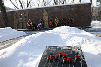 Делегация вуза возложила цветы у стелы, расположенной на территории медуниверситета, и почтила минутой молчания память всех погибших воинов, которые сражались за Родину.