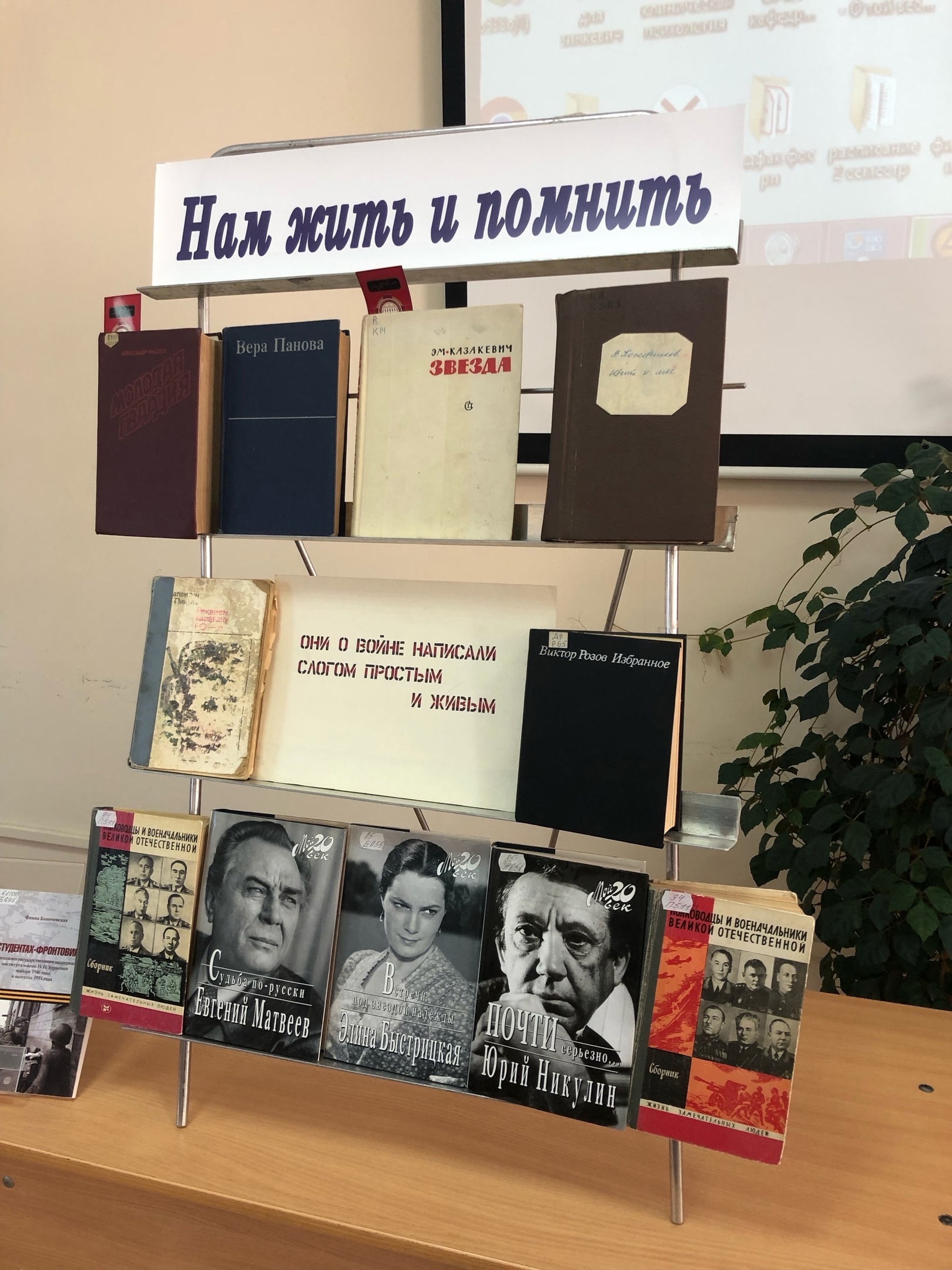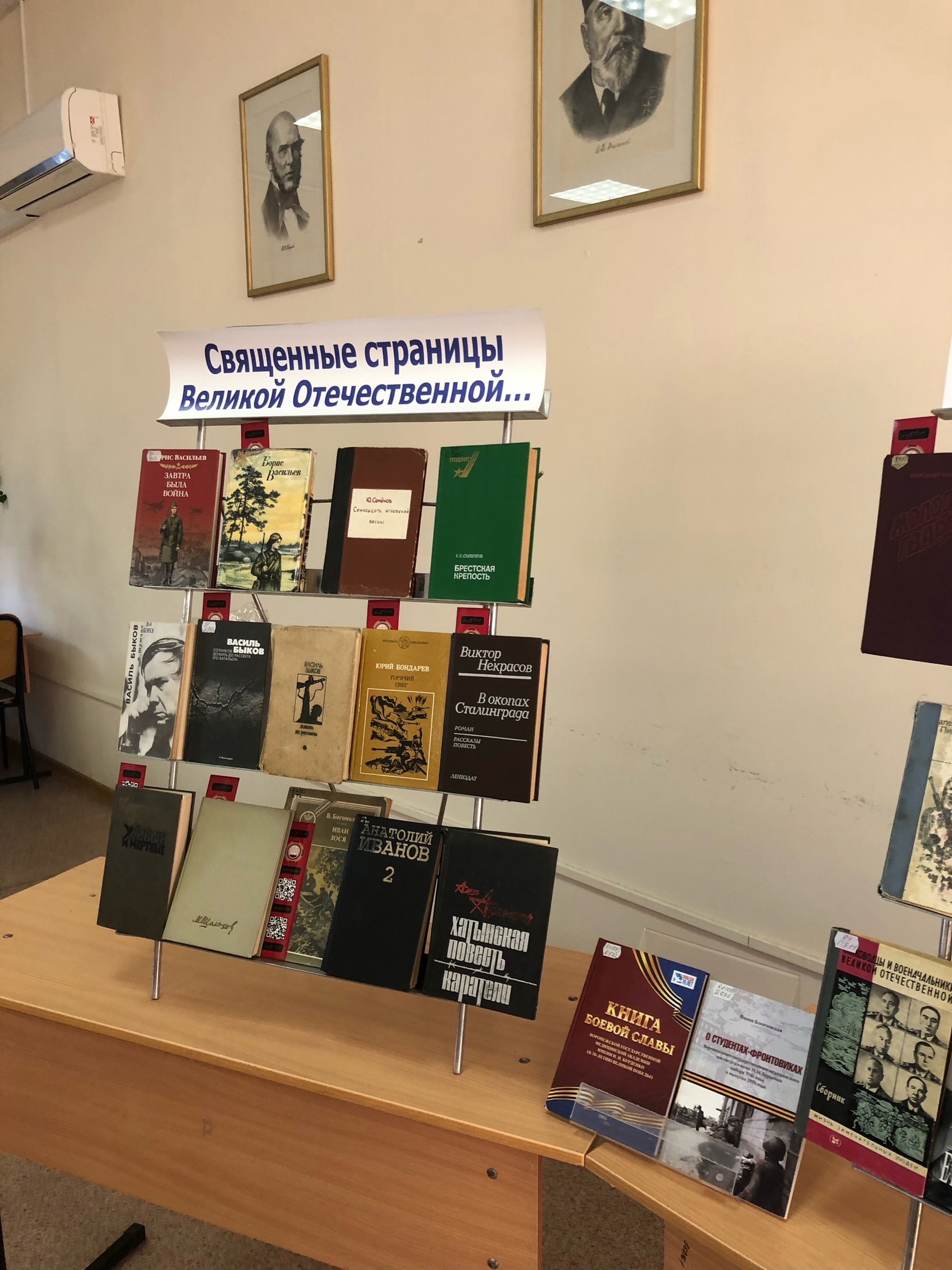 Тему патриотизма продолжила заведующая сектором абонемента художественной литературы Печурица Людмила Васильевна, которая познакомила студентов с книгами из фонда художественной литературы. В качестве содокладчика выступила студентка 1 курса Л -110 Карпачёва Алина, которая рассказала об участниках ВОВ знаменитых режиссёрах Владимире Басове (уроженце Воронежской области) и Леониде Гайдае (100-летие которого отмечается в этом году).