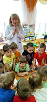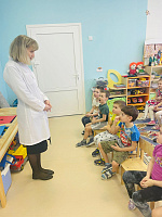 Участники рабочей группы зав. кафедры Петрова Т.Н., профессор Фурсова Е.А., доцент Кочеткова И.В, студентка педиатрического факультета 406 группы Шевченко Н.В. рассказали детям средних групп в доступной форме о профилактике стоматологических заболеваний у детей, о вредных и полезных продуктах для зубов, провели в игровой форме «Мастер класс по чистке зубов», ролевую игру «Мистер зубастик».