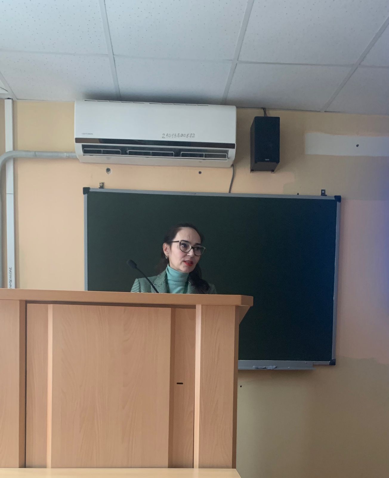 Первый доклад представила Шулекина Дарина, студентка группы Л-424, на тему «Антибактериальная терапия инфекций органов малого таза».