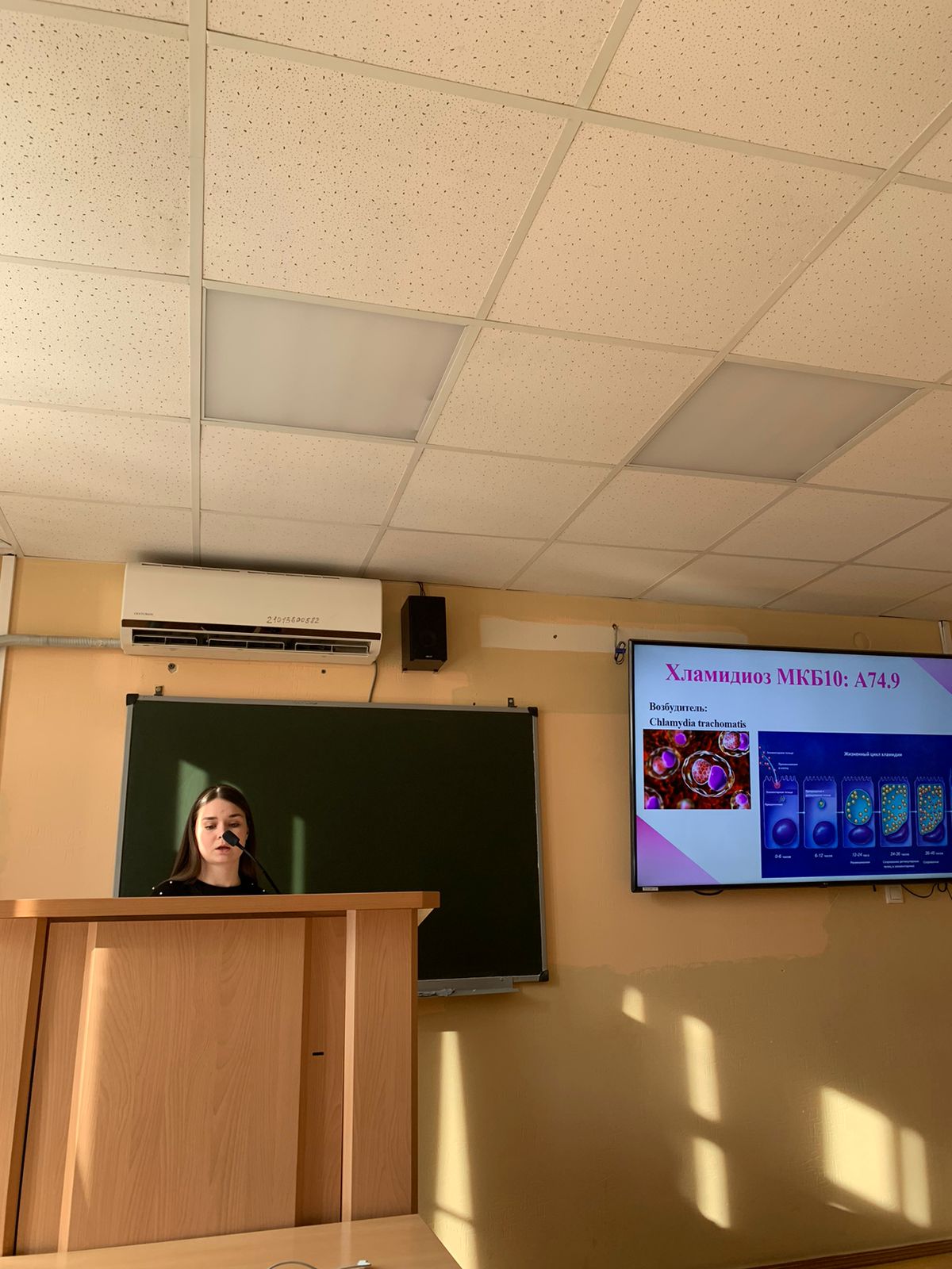Второй доклад «Возбудители генитальных инфекций-хламидиоз, уреалазмоз, микоплазмоз»- представила Лукина Юлиана, студентка группы Л-409.