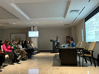 С докладами выступили преподаватели кафедры дерматовенерологии и косметологии: д.м.н. профессор Е.В. Донцова («Профессиональные дерматозы: особенности проявлений и как улучшить качество жизни пациентов»), к.м.н. доцент Бахметьева Т.М. («Кожный зуд. Пути терапии, практические решения», «Поражения кожи при сахарном диабете»), к.м.н. доцент Бахметьев А.А. («Микозы в современных реалиях. Возможности повышения эффективности терапии»), к.м.н. ассистент Погодаева Т.И. («Системная терапия тяжелых форм акне в современной клинической практике»), ассистент Быкова Ю.Н. («Оценка психо-соматического статуса косметологического пациента для индивидуального составления программы коррекции и прогнозирования эстетических результатов»). Сообщение на тему «Диффузное телогеновое выпадение волос: его причины и лечение» доложила Гандалян Е. В. - к.м.н., врач-косметолог, дерматолог-трихолог. Ординаторы кафедры дерматовенерологии и косметологии Васецкая Е.Д., Суббота Д.С., Кузнецова И.А. представили клинические случаи заболеваний кожи: больных с многоформной экссудативной эритемой, врожденной небуллёзной ихтиозиформной эритродермией.