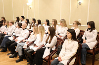 Ассистенты кафедры терапевтической стоматологии ВГМУ им. Н. Н. Бурденко к.м.н. Роман Викторович Студеникин представил презентацию «Современная реабилитация пациентов с применением цифровых технологий и искусственного интеллекта»; к.м.н. Елена Николаевна Рожкова рассказала об основных направлениях и перспективных научных исследованиях Института стоматологии.
