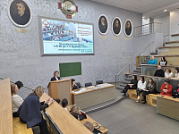 Выступление выпускников ИСО Бобошко Софии и Венгеренко Святослава сопровождалось презентацией, в которой они осветили учебную и внеучебную деятельность студентов ИСО, показали глубину практической направленности обучения, познакомили с основными направлениями внеучебной работы (волонтерское движение, патриотическое воспитание, творческие коллективы ВГМУ им Н.Н. Бурденко).