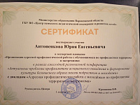 Специалисты, принявшие участие в работе конференции с докладами, получили Сертификаты участника-докладчика ежегодной региональной конференции «Актуальные проблемы профилактики асоциального поведения и формирование культуры безопасного образа жизни подростков и молодежи».